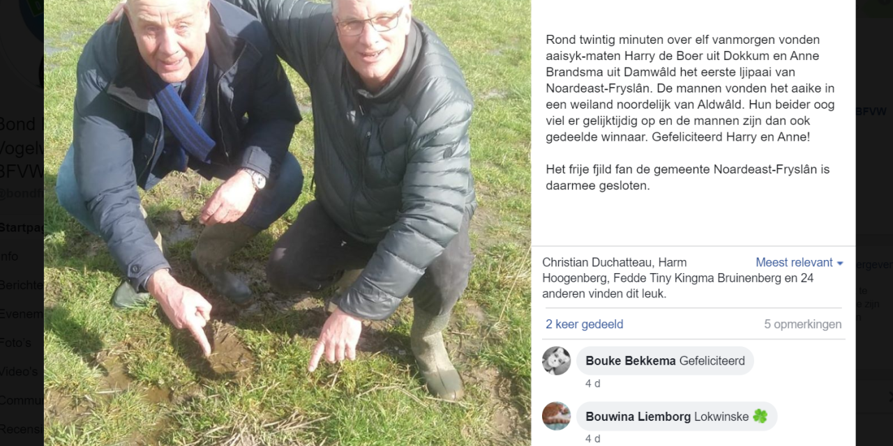 Fûgelwacht Aldwâld - Eerste ljipaai Noardeast-Fryslân gevonden in wachtgebied Aldwâld