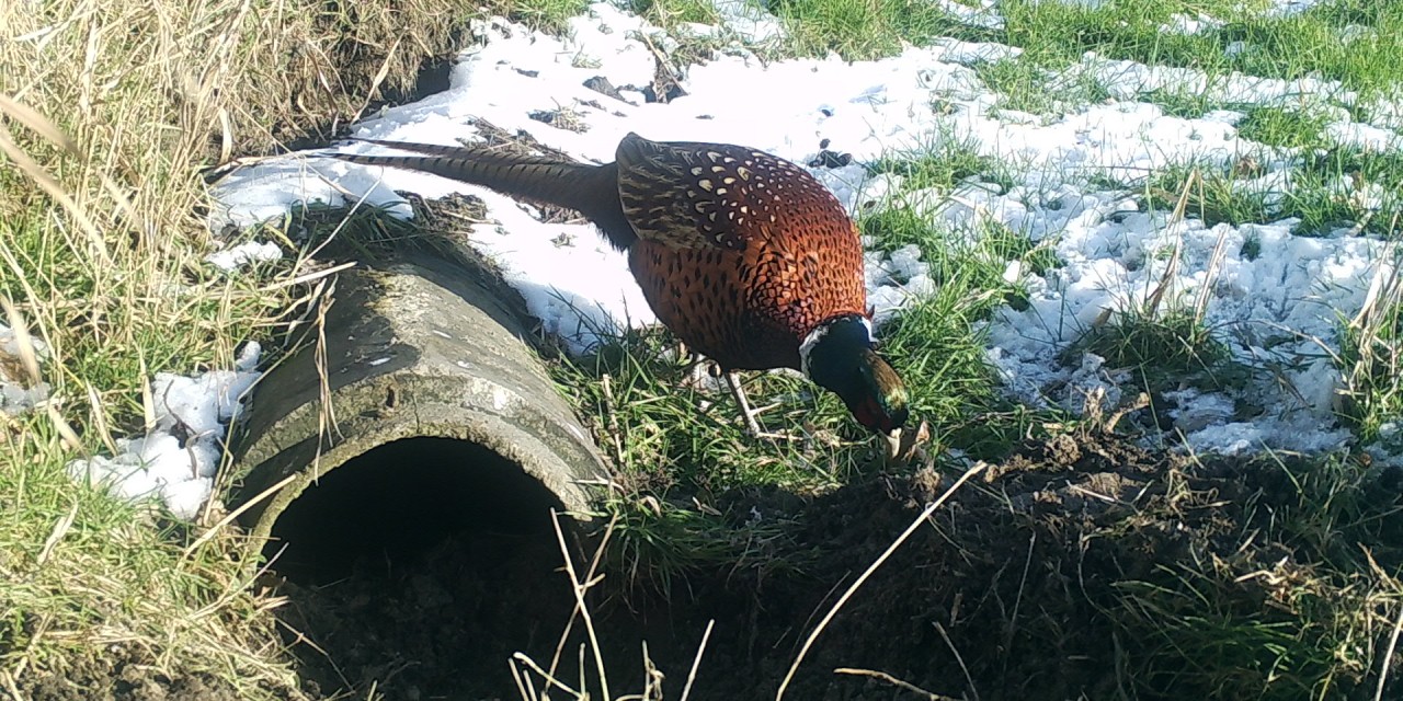 Als de honger de overhand neemt verliezen de vogels hun natuurlijke schuwheid en laten zich beter zien, of zoeken voedsel op plaatsen waar ze anders niet komen. Dat levert soms mooie waarnemingen op. Op de wildcamerabeelden hieronder zien we achtereenvolgens een fazant, houtsnip en (toch wel bijzonder!) een roerdomp. De roerdomp (reiddomp) is normaal gesproken een hele schuwe vogel van rietkragen en moerassen, die je zelden ziet. Zijn geluid is echter des te kenmerkender en wordt wel vergeleken met een 'scheepshoorn in de mist'.